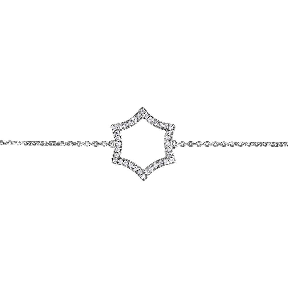 Un braccialetto a catena sottile e femminile, esaltato da un motivo a stella con un delicato pavé di diamanti. Braccialetto di lunghezza regolabile : 18cm, 17cm, 16cm.