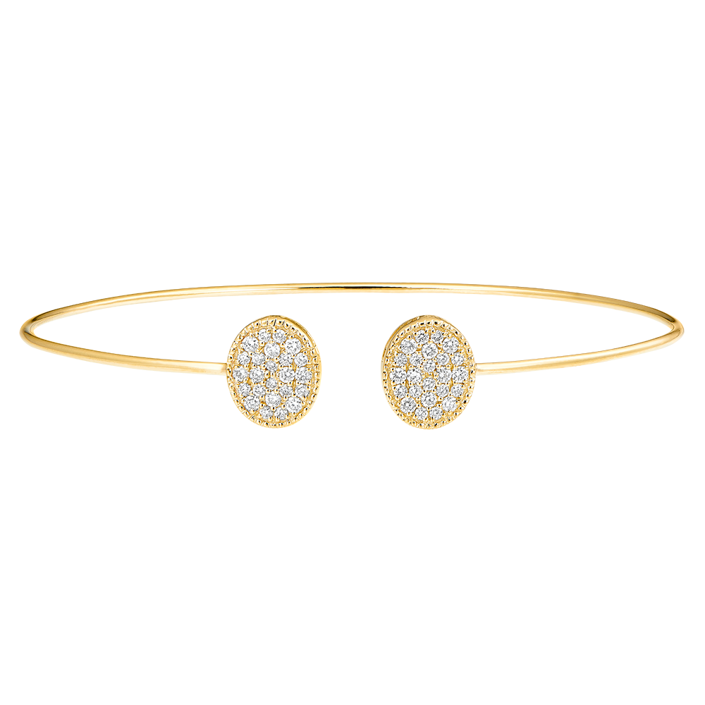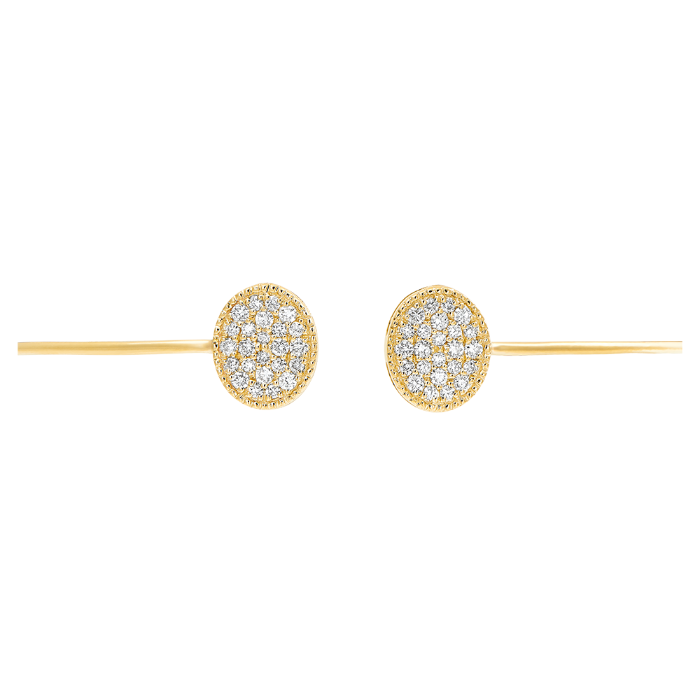 Lo splendore iridescente di due pavé diamanti minuziosi e raffinati su un delicato braccialetto rigido in oro giallo.