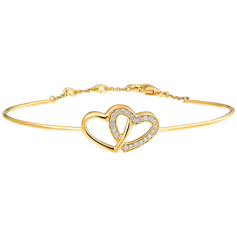 Un braccialetto rigido dalle dolci curve che unisce con delicatezza oro giallo e diamanti pavé. Braccialetto con chiusura a catena per una maggiore praticità.