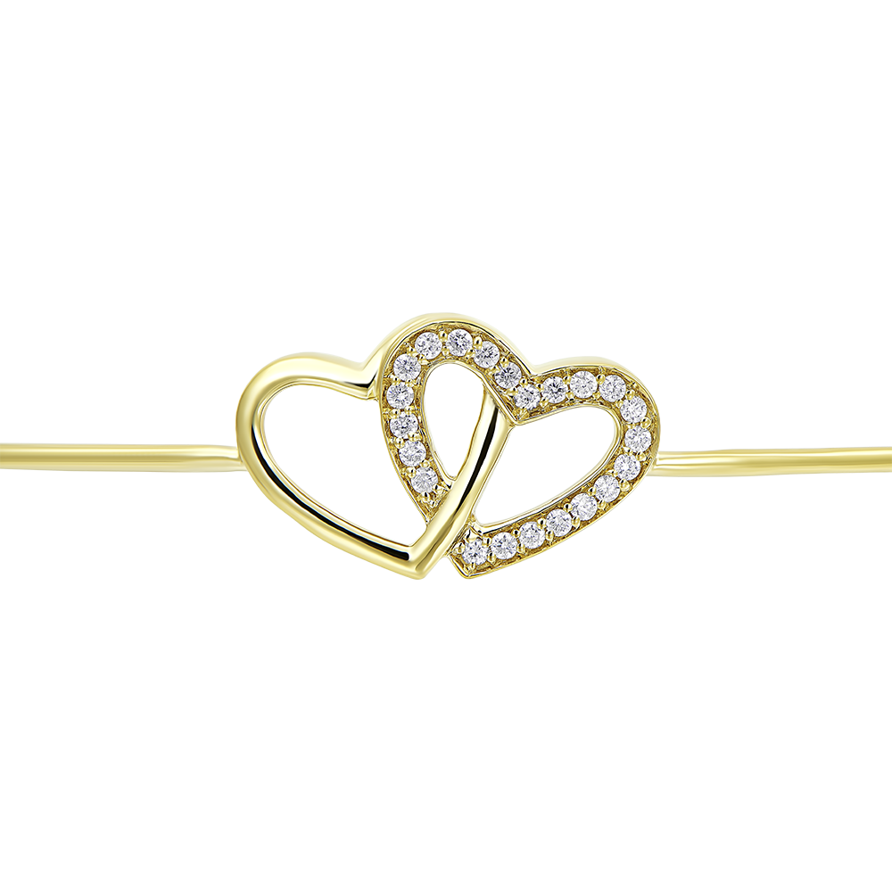 Un braccialetto rigido dalle dolci curve che unisce con delicatezza oro giallo e diamanti pavé. Braccialetto con chiusura a catena per una maggiore praticità.