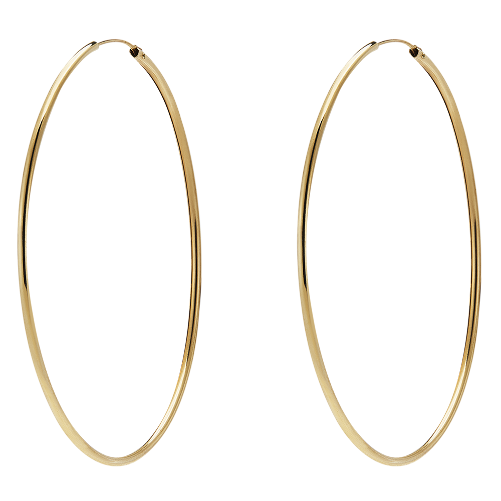 Un paio di orecchini in oro con diametro 50mm. Filo d'oro cavo di 1.5mm di spessore.