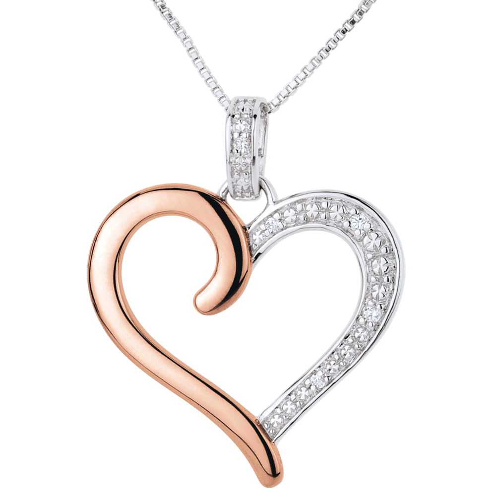 Ciondolo Cuore Amazzone - Oro bianco e Oro rosa - 18 carati - 5 Diamanti