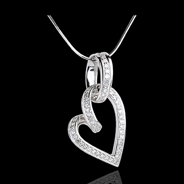 Un prezioso cuore in Oro bianco e Diamanti per un splendore tenero e delicato alla base del collo.