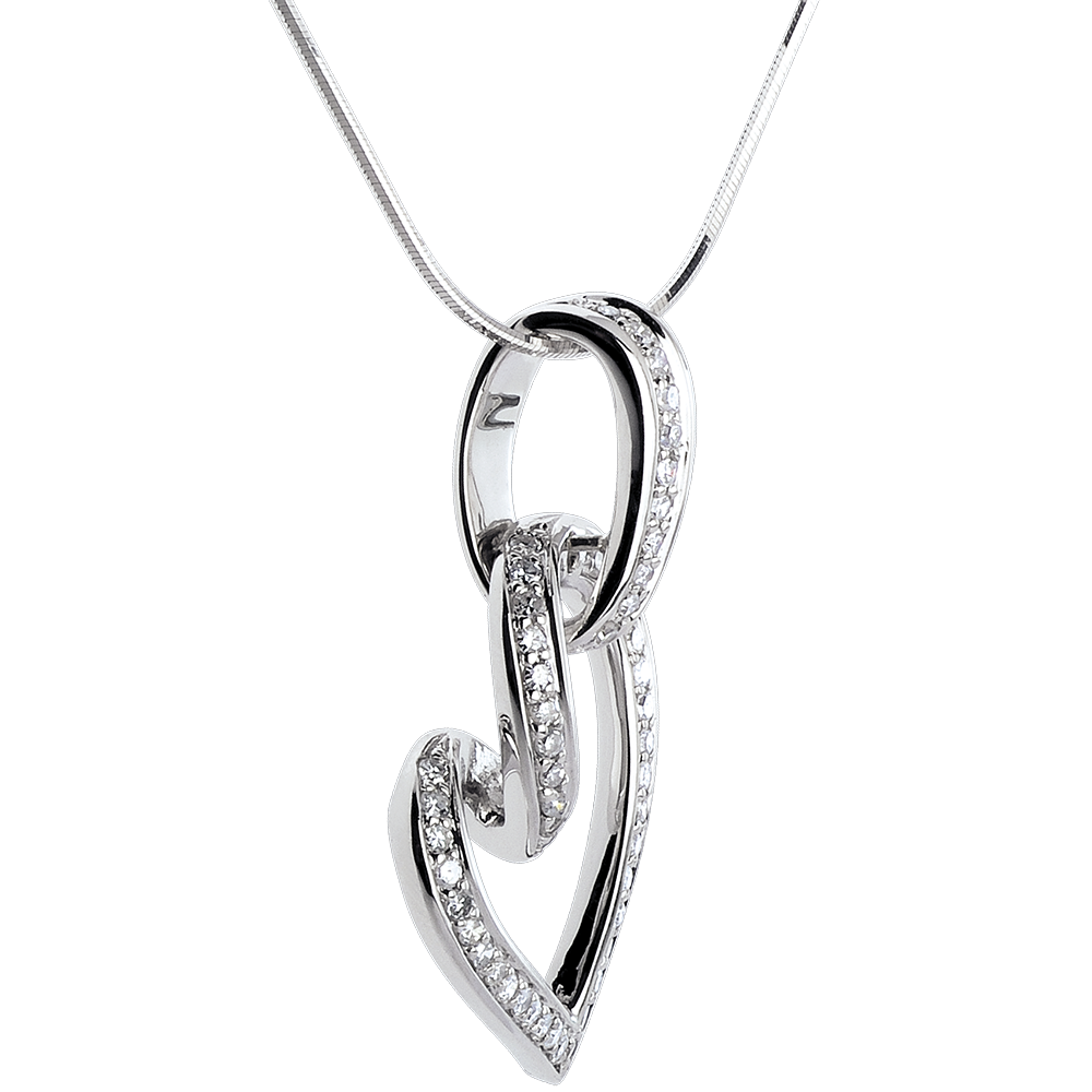 Ciondolo Cuore Appeso - Oro bianco - 18 carati - 52 Diamanti - 0.31 carati