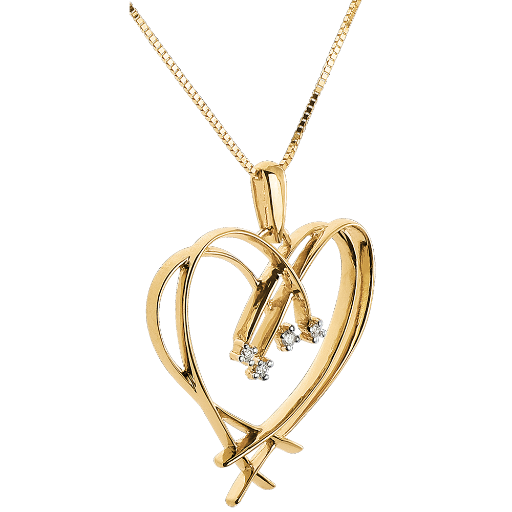 Ciondolo Cuore e scintille - Oro giallo - 18 carati - 4 Diamanti
