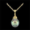 Una sublime perla grigia a forma di goccia è sospesa a una montatura in Oro giallo