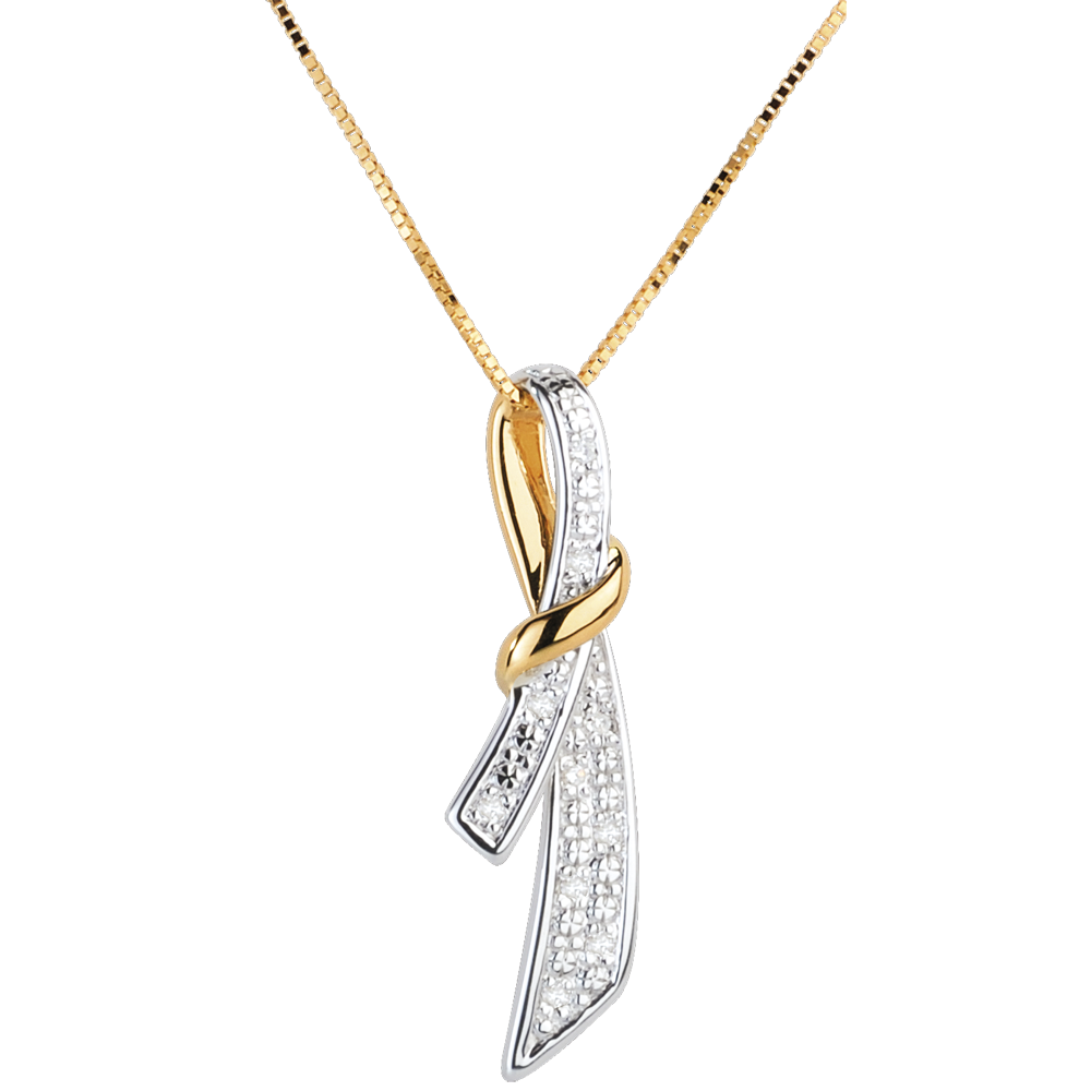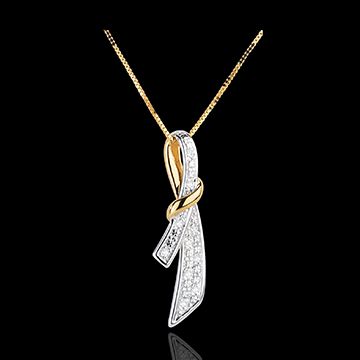 Ciondolo Dolce Nodo - Oro bianco e Oro giallo - 18 carati - 10 Diamanti