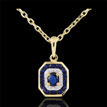 Ciondolo Oriade - Oro bianco e Oro giallo - 9 carati - 15 Zaffiri