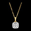 La lucentezza di un ciondolo con pavé di diamanti quadrati, coronato da un alone di diamanti. Un ciondolo in oro bianco e giallo fine e delicato, intriso di eleganza senza tempo.