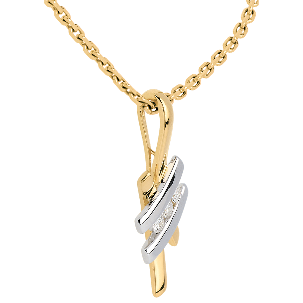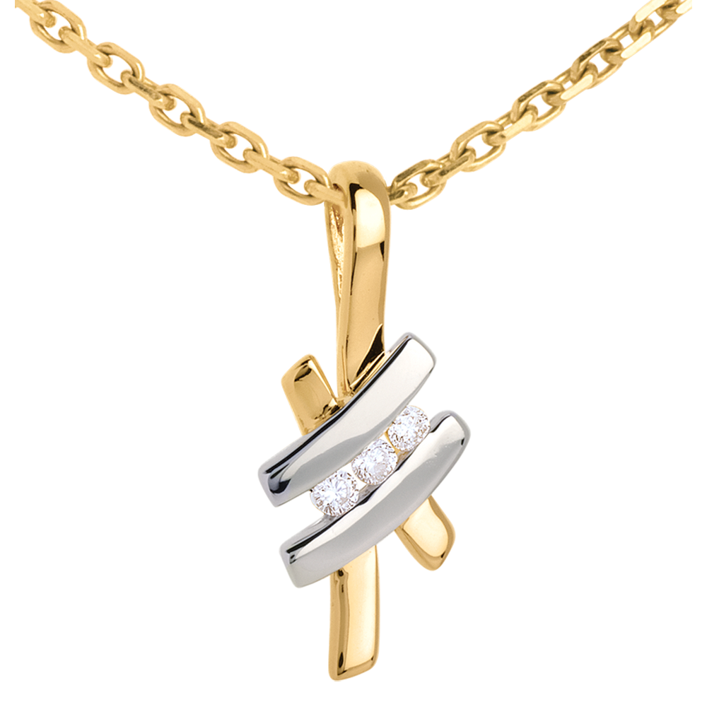 Tutta la grazia e l'equilibrio della calligrafia orientale per un ciondolo trilogia diamante in Oro giallo e Oro bianco