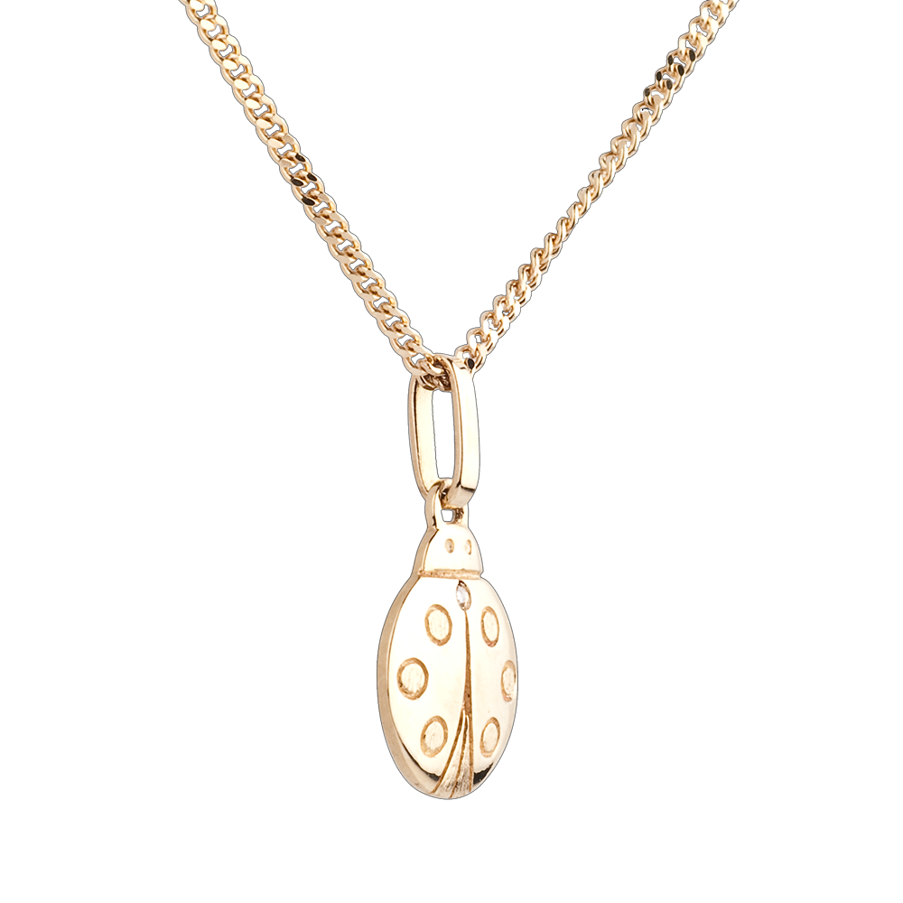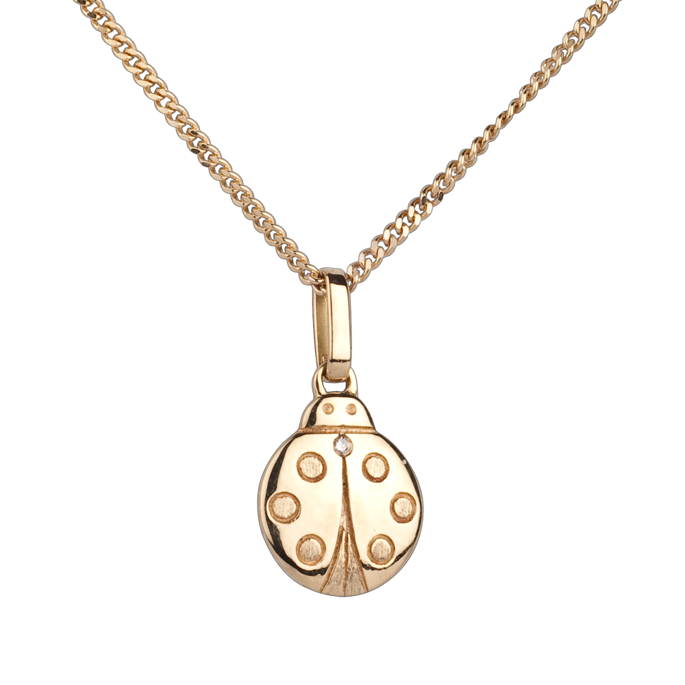 Una coccinella portafortuna in Oro giallo dolce e tonda. Il settimo puntino sulle ali è un diamante. Modello piccolo.