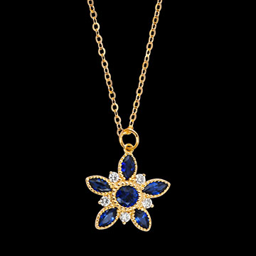 UCCELLO DEL PARADISO N. 11Collana Fiore - Oro giallo 9 carati - Zaffiro sintetico, Diamante di laboratorio ID : 3769