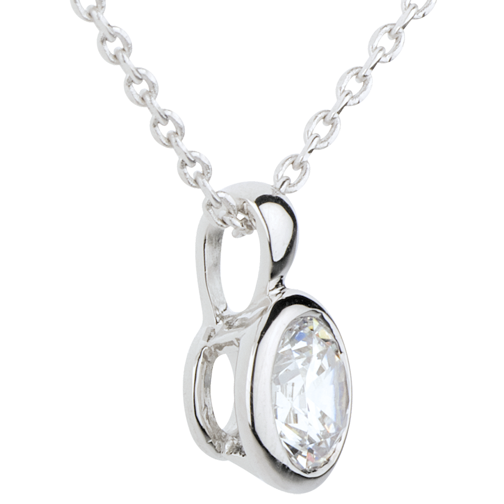 Collana Bambolina Solitario - Oro bianco - 18 carati - Diamante - 0.75 carati