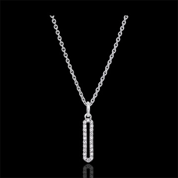 Un collier che rivisita la forma di piccola "cartuccia" in una versione minimalista, dai soli contorni pavé. Un gioiello dalle linee semplici e delicate.