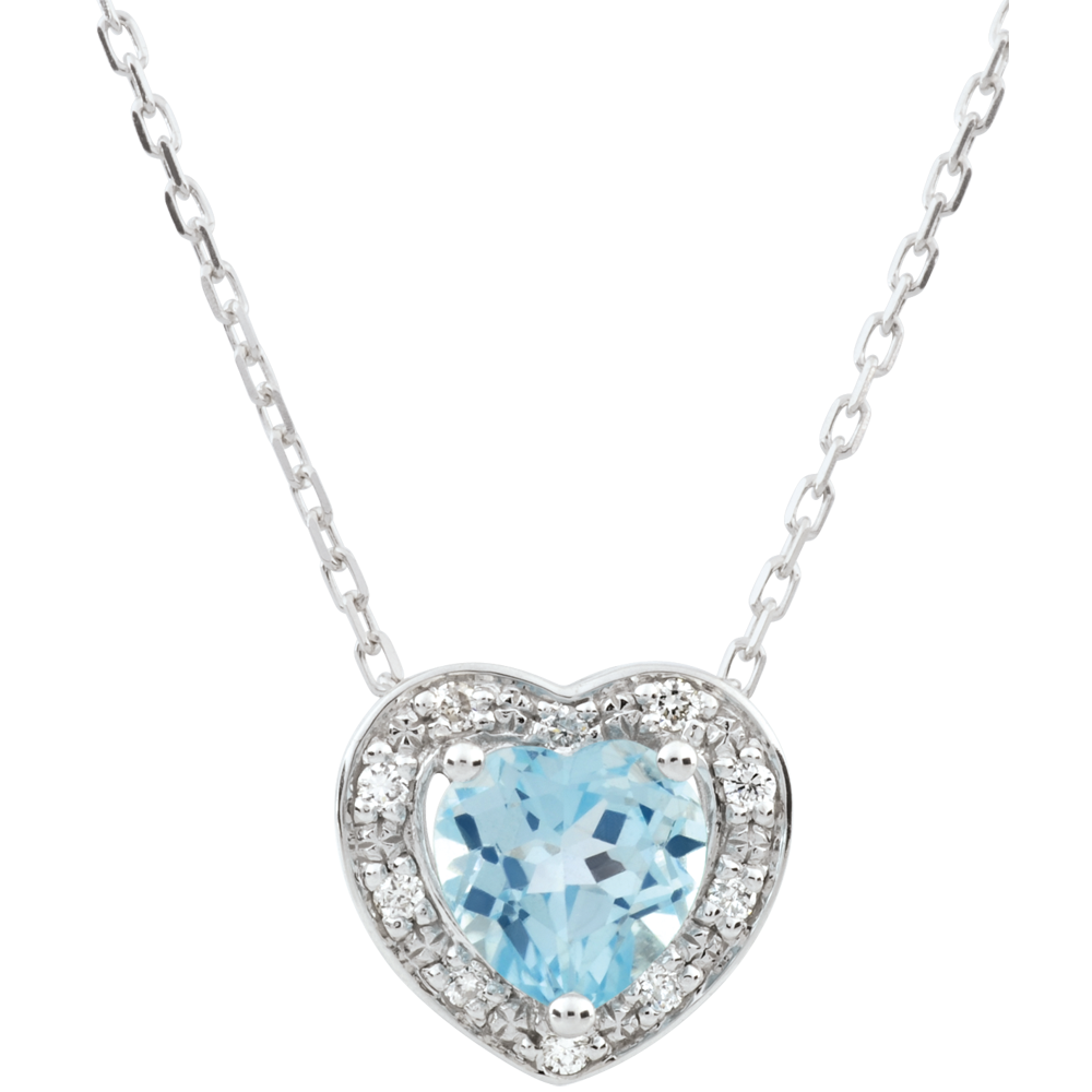 Collana Cuore Incantato - Oro bianco - 18 carati - 10 Diamanti - Topazio blu - 0.97 carati