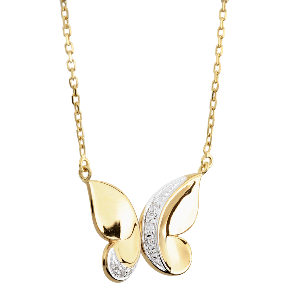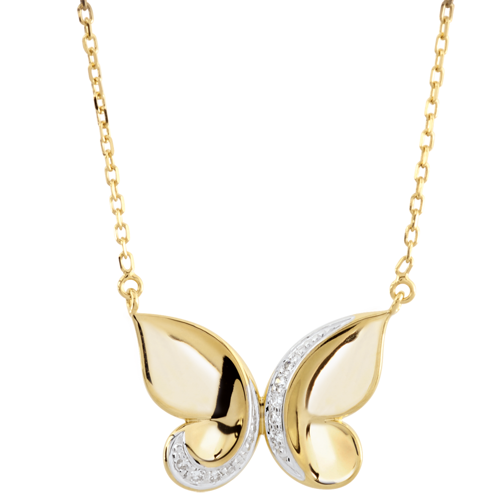 Due graziose farfalle in Oro giallo e diamanti si trasformano in una leggiadra parure.