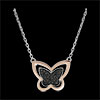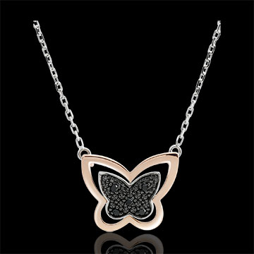 Una particolare farfalla notturna, forgiata nell'Oro rosa e impreziosita da diamanti neri è fissata a una catena in Oro bianco.