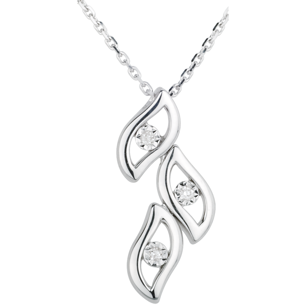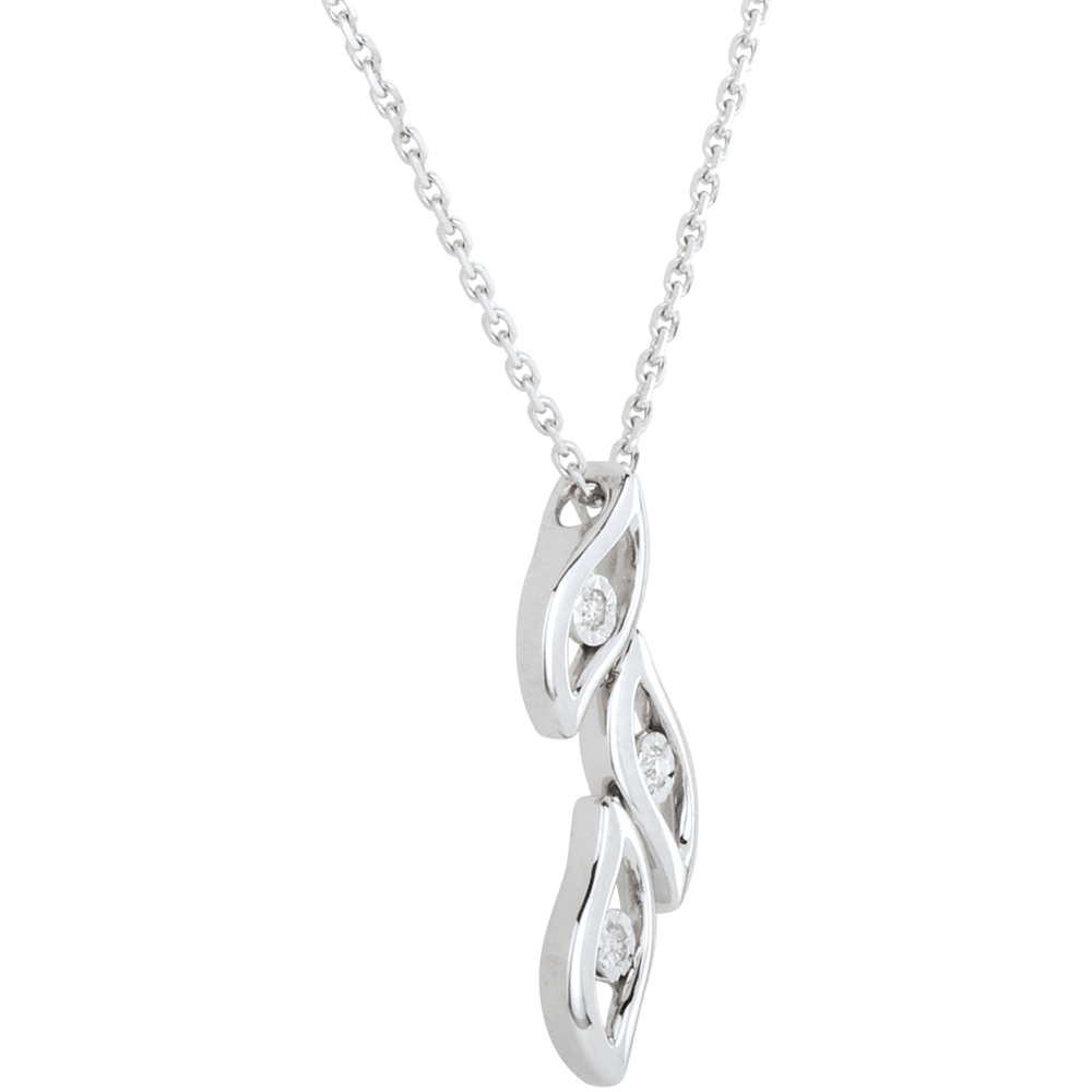 Questo gioiello vi è proposto in anteprima a un prezzo eccezionale per una durata limitata.Tre piccole fiamme d'Oro bianco e diamanti danzano alla fine di una catena a maglia rolò.
