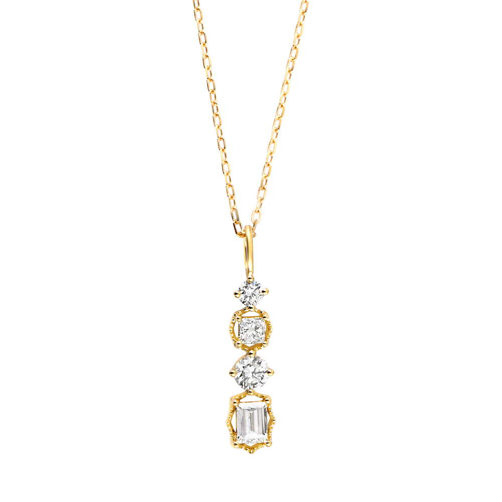 Quattro diamanti luminosi si allineano in un elegante gioco di dimensioni e riflessi.Un ciondolo delicato e raffinato, capace di catturare la luce con armonia e stile contemporaneo.