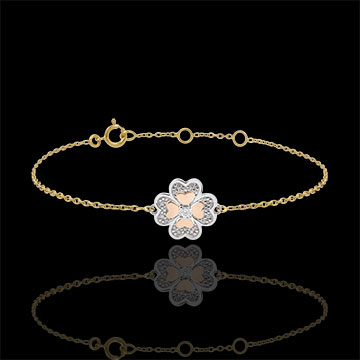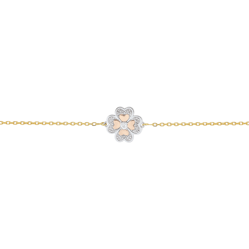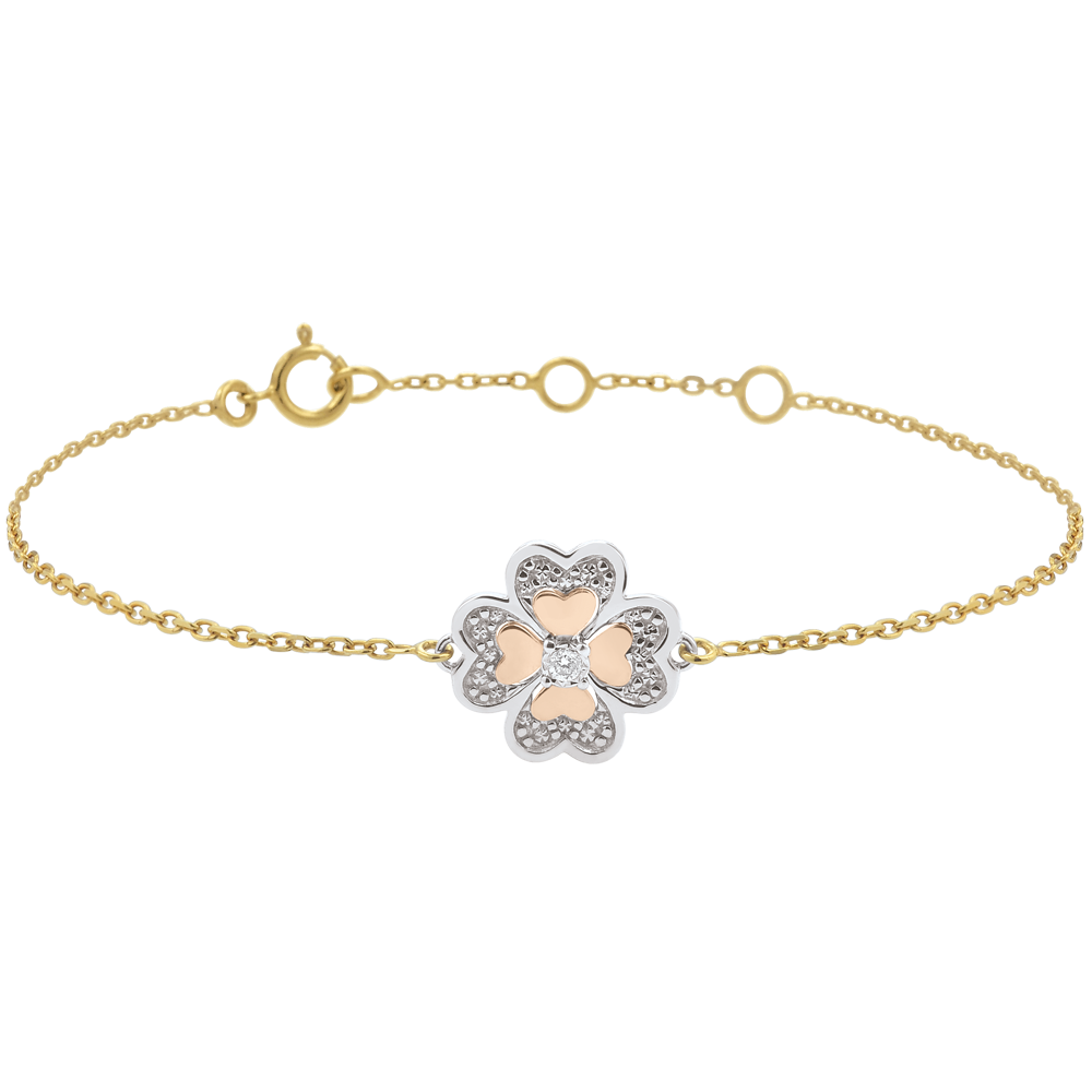 Bracciale Solitario Freschezza -Quadrifoglio Splendente - 3 ori - 9 carati - Diamante