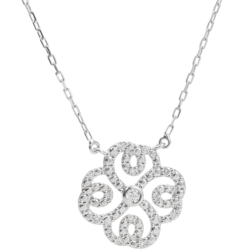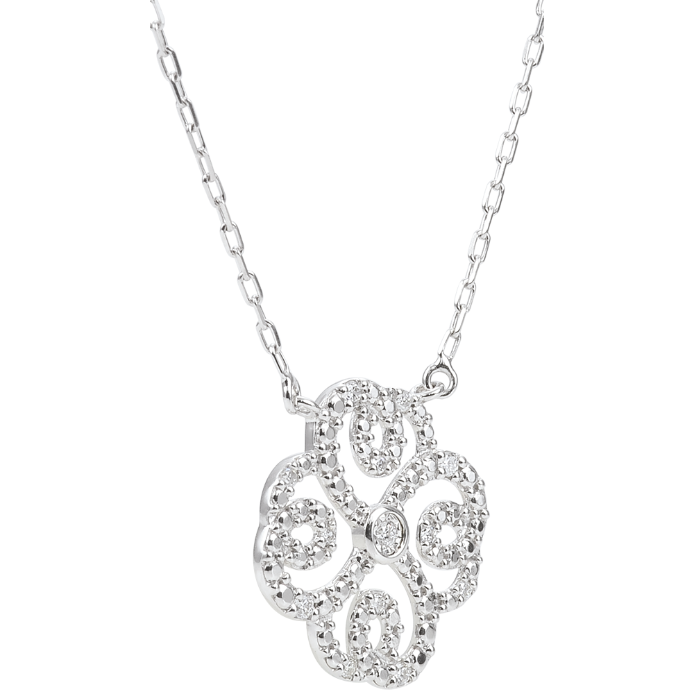 Sublime collana Trifoglio Arabesco in Oro bianco incastonata di diamanti e montata su catenina.