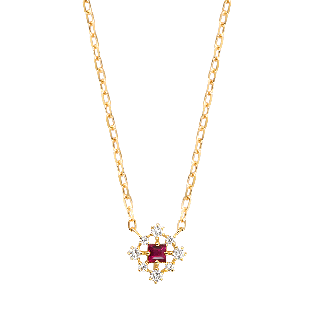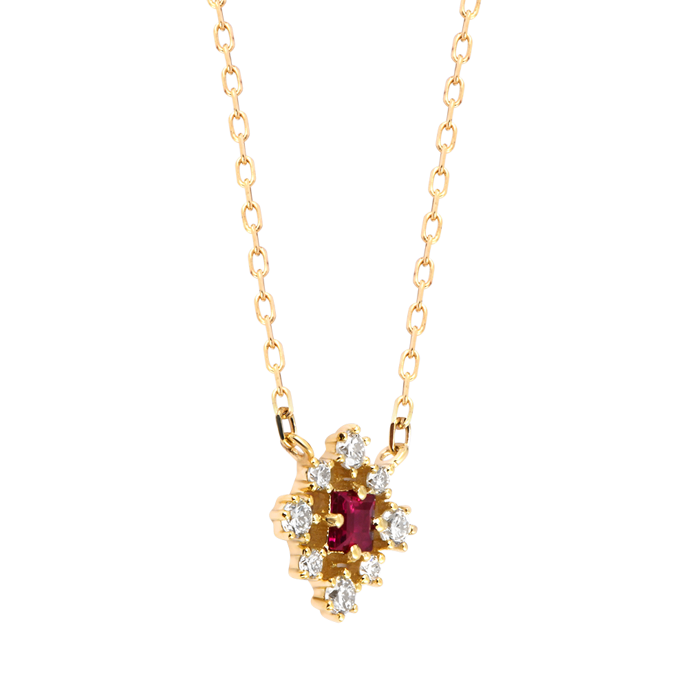 Collana Rubisca – Oro giallo 9 carati, rubino e diamanti sintetici