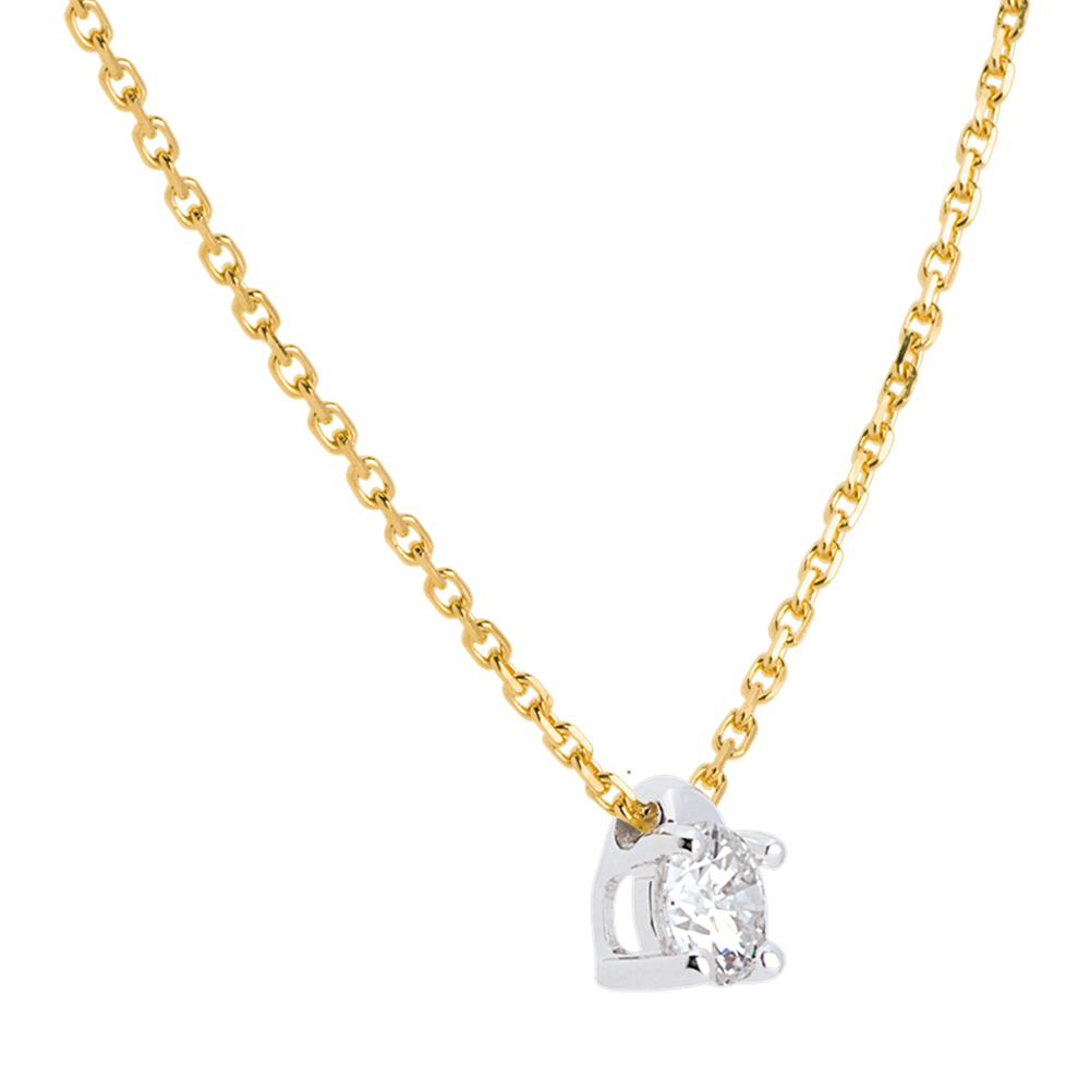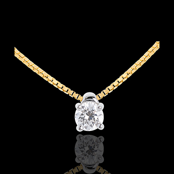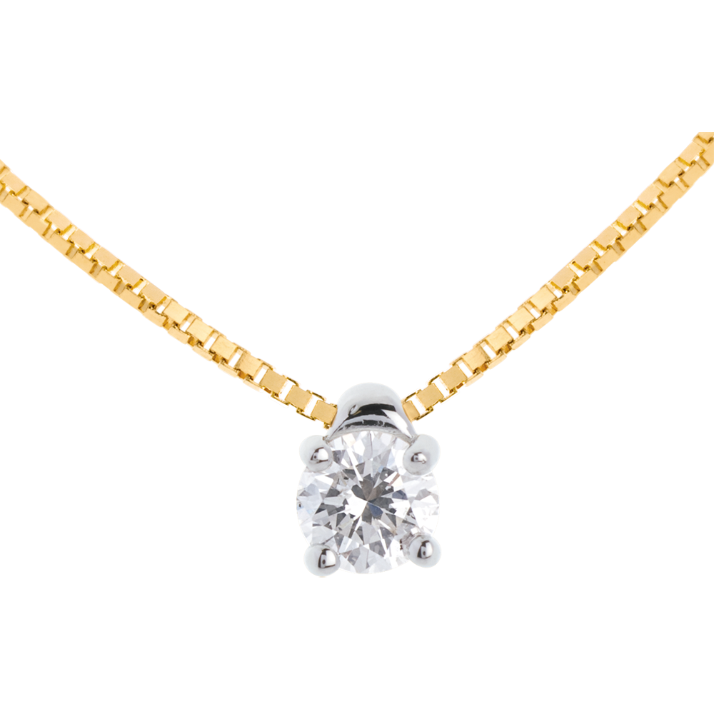 L'apologia e l'essenzialità di un diamante abbinato a una sobria catena in oro giallo .