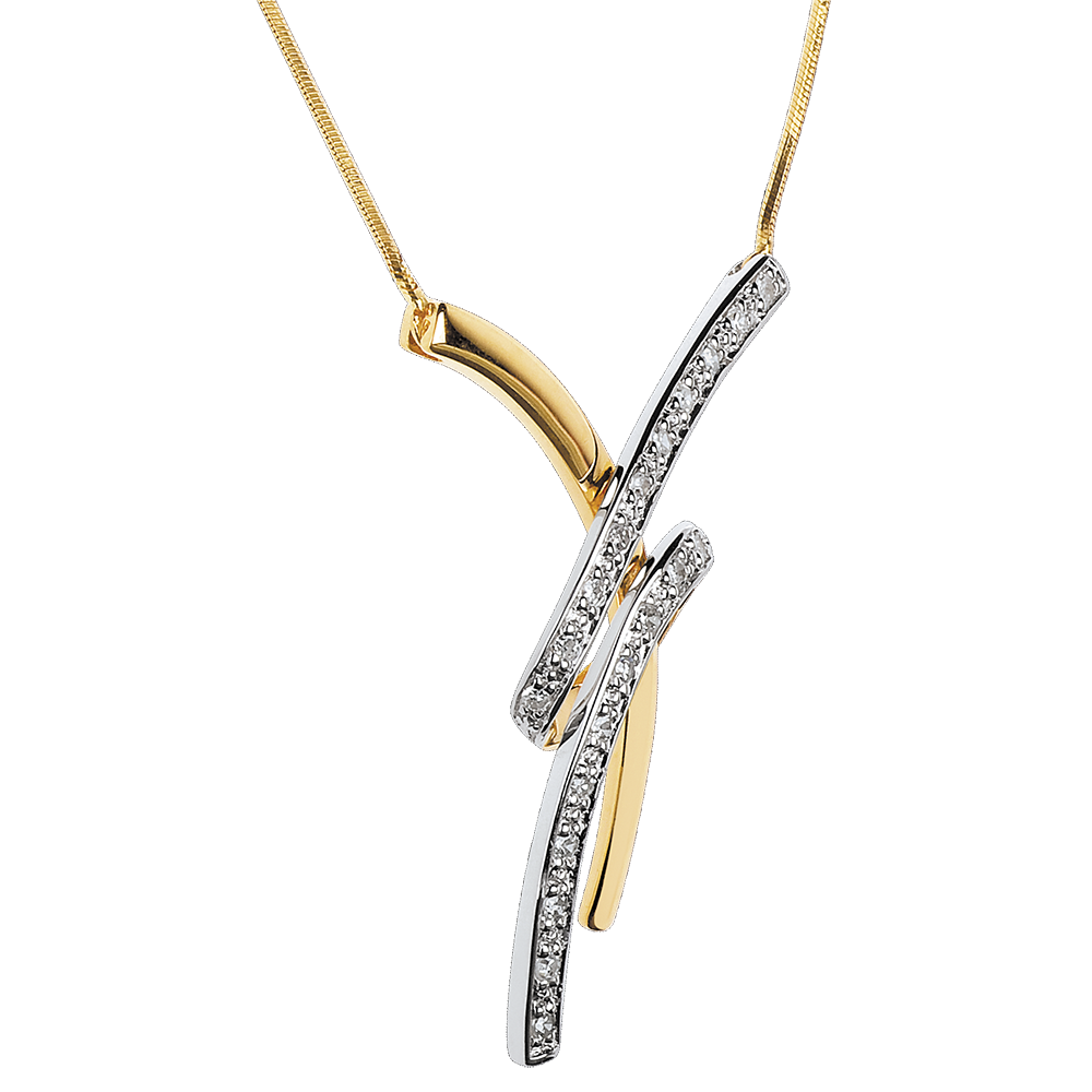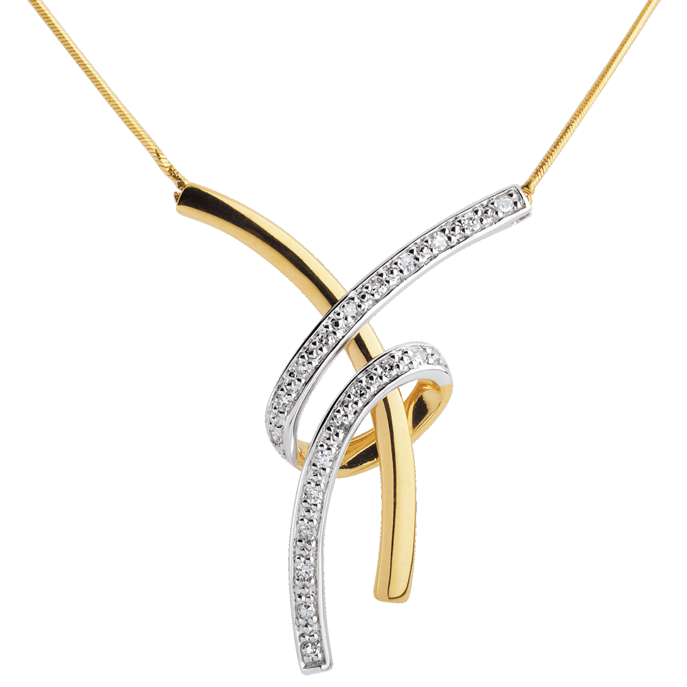Un girocollo leggero e femminile con due sinuosi motivi in Oro giallo e Oro bianco pavé delicatamente intrecciati
