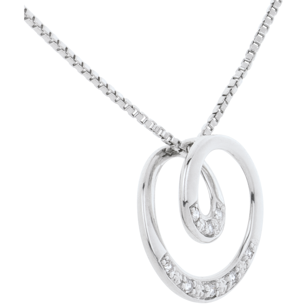 Un vortice d'Oro bianco incrostato di diamanti si avvolge all'infinito su una catena in Oro bianco
