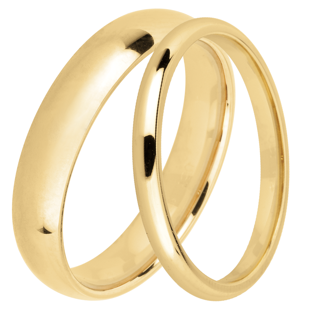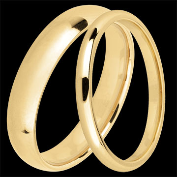 Una coppia elegante di fedi nuziali in oro giallo: una fede classica da 2 mm per lei e una versione da 4 mm per lui, per suggellare il vostro amore con raffinatezza senza tempo.…