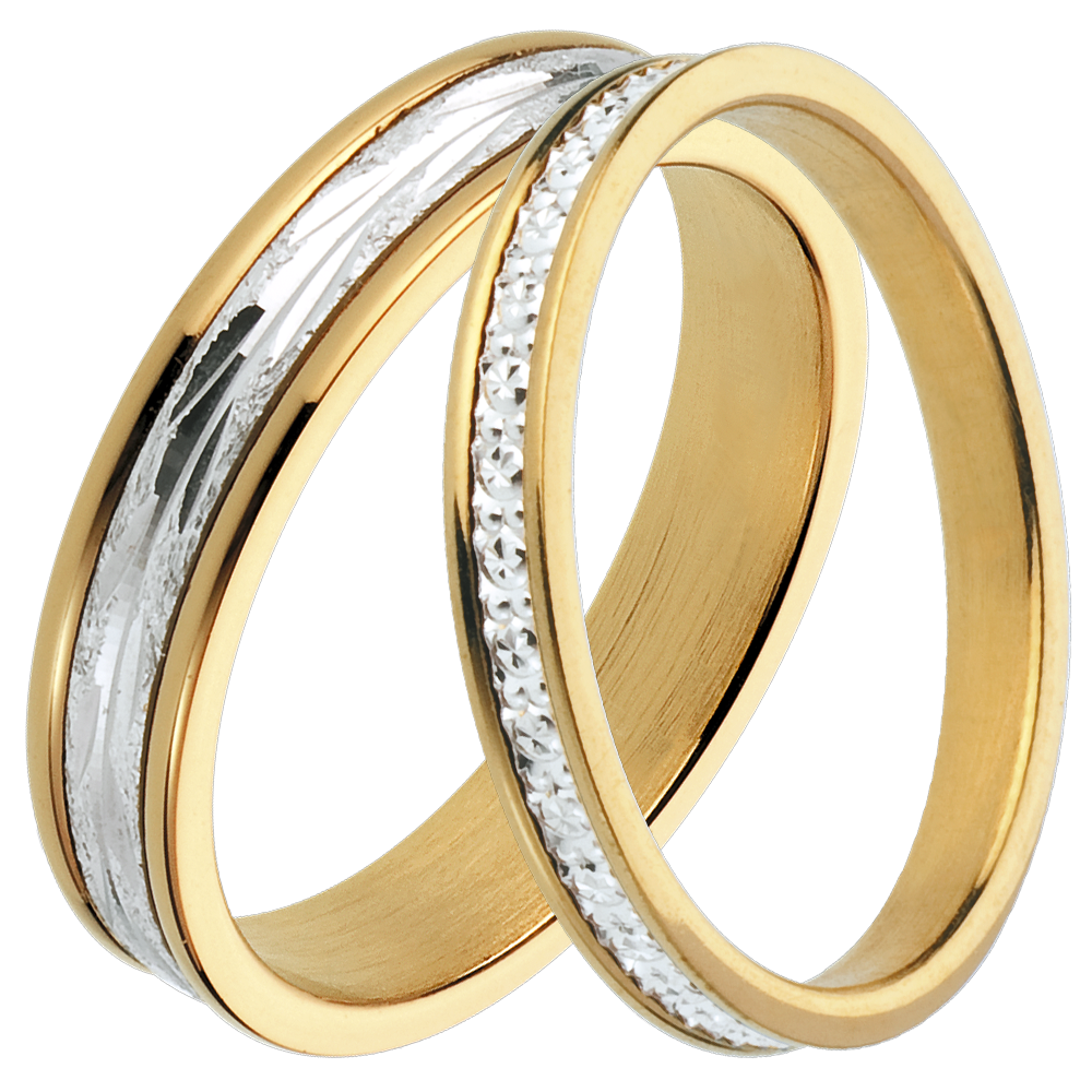 Duo di fedi Promesse – Oro bianco e giallo – 18 carati
