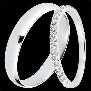Duo di fedi Pure & Bettina - Oro bianco e diamanti - 18 carati
