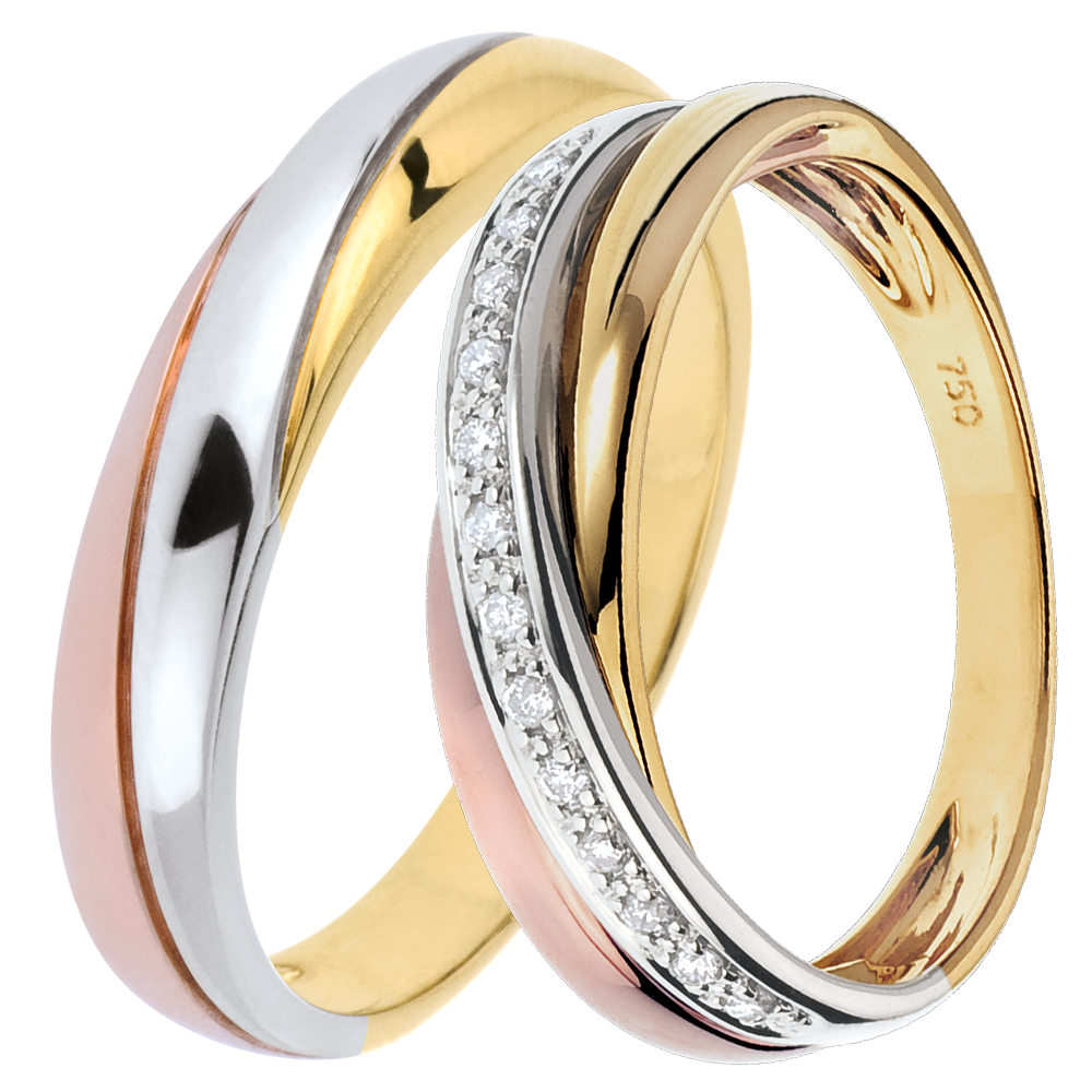 Duo di fedi Saturne – Tre ori & diamanti – 18 carati