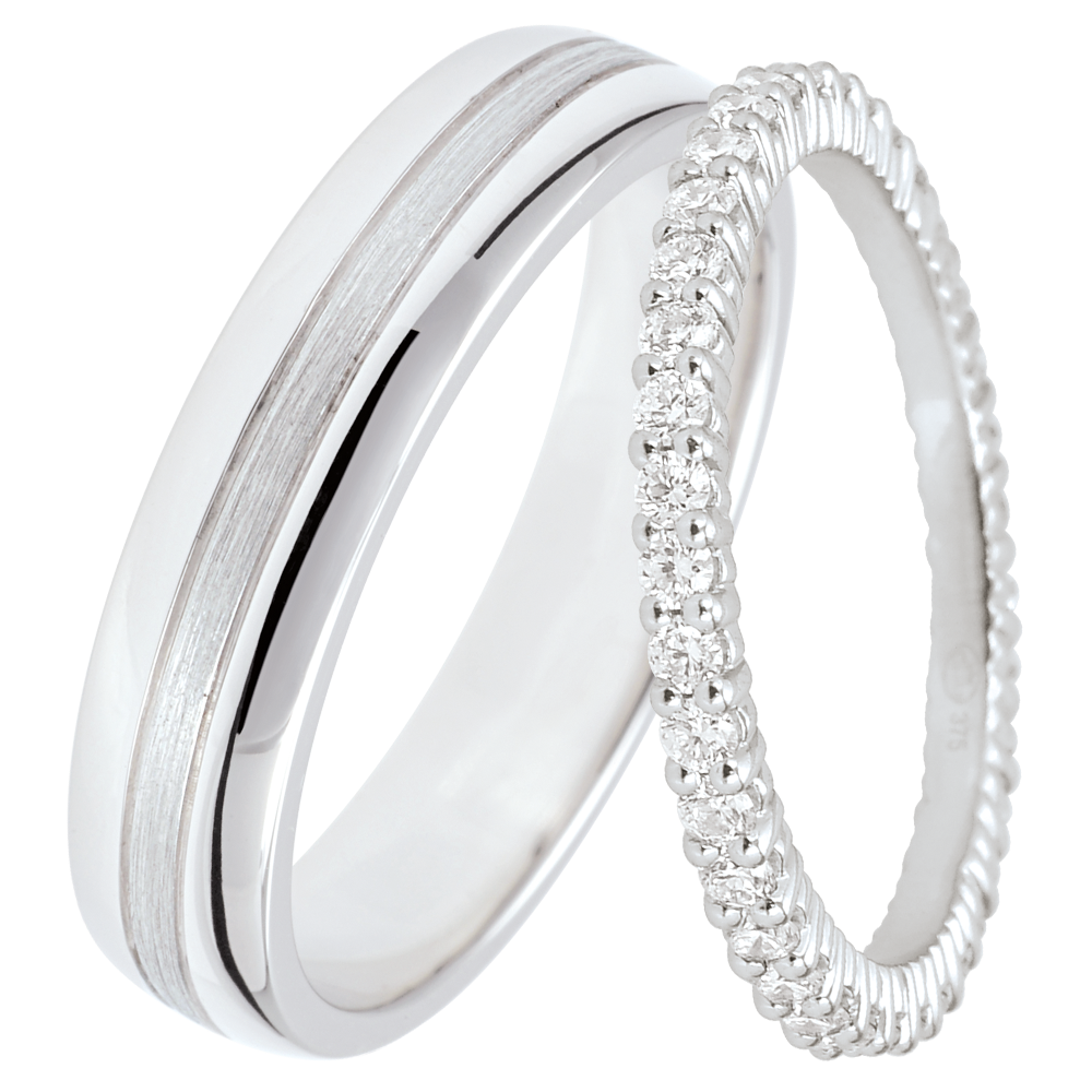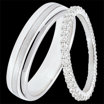 DUO DI FEDI STAR & RADIEUSE – ORO BIANCO E DIAMANTI – 9 CARATI