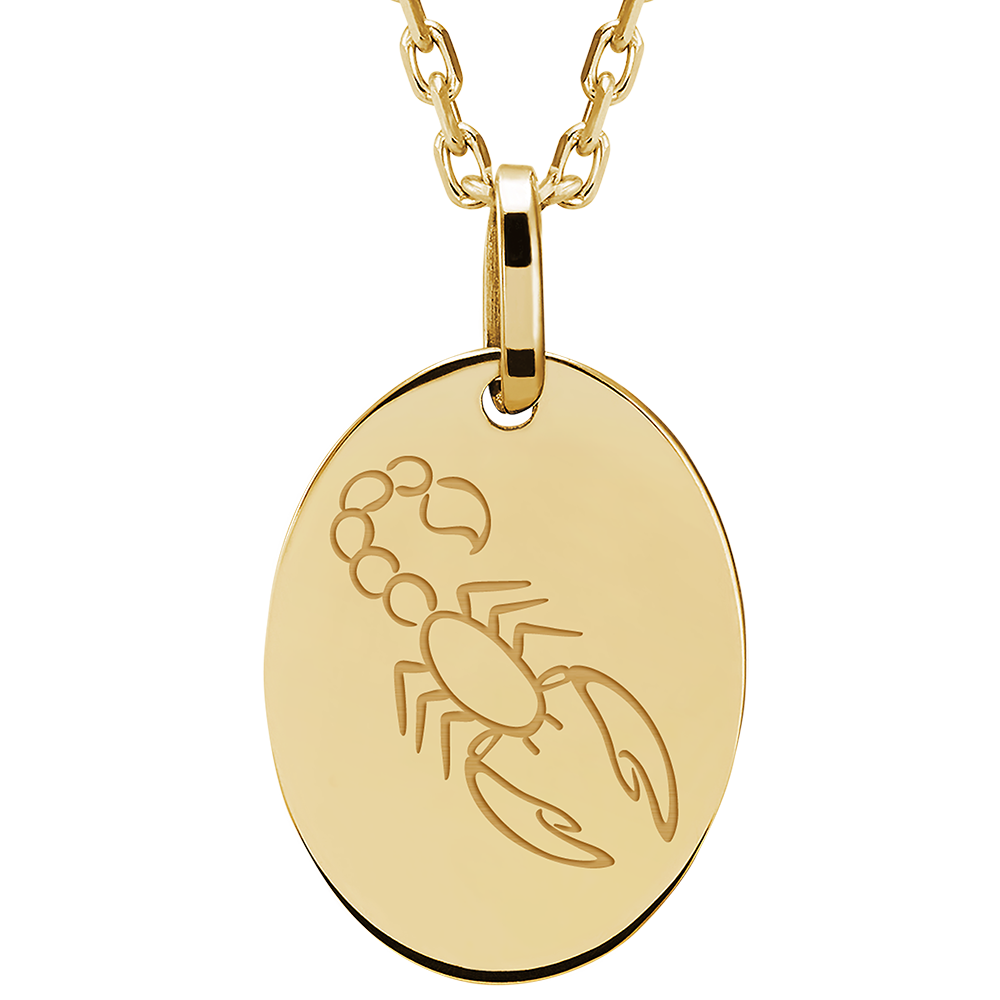Medaglietta ovale incisa - Scorpio - Oro giallo 9 carati