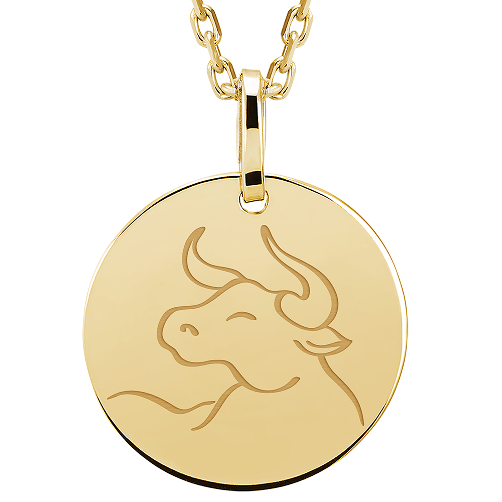 ZODIAC YOURS N. 16Medaglietta rotonda incisa - Taurus - Oro giallo 9 carati ID : 4807 4.7