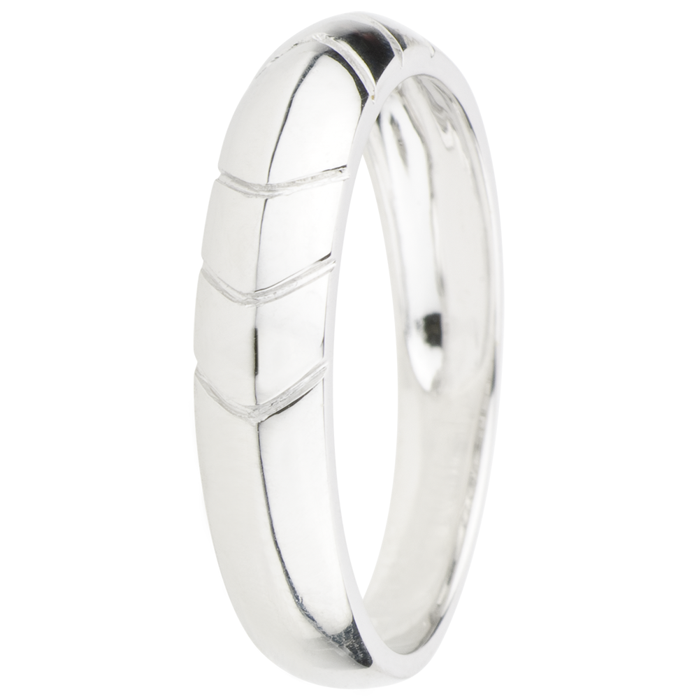 Una fede bombata in Oro bianco dal design moderno, forte e audace.