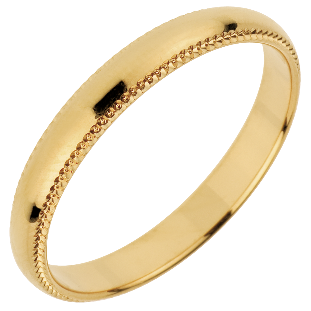 Una fede in Oro giallo classica ed elegante, con un motivo inciso per conferire la massima brillantezza.