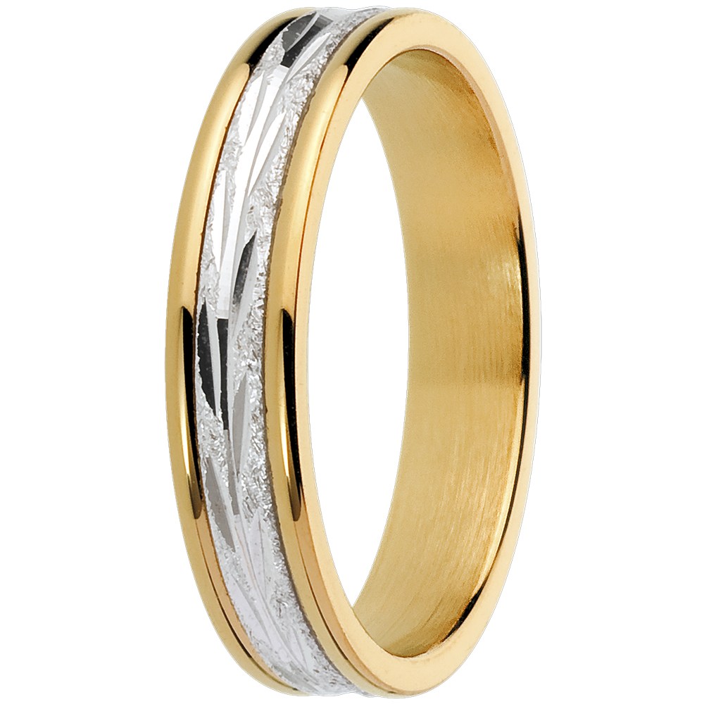 Fede nuziale Incisione vegetale - modello piccolo - Oro bianco e Oro giallo - 18 carati