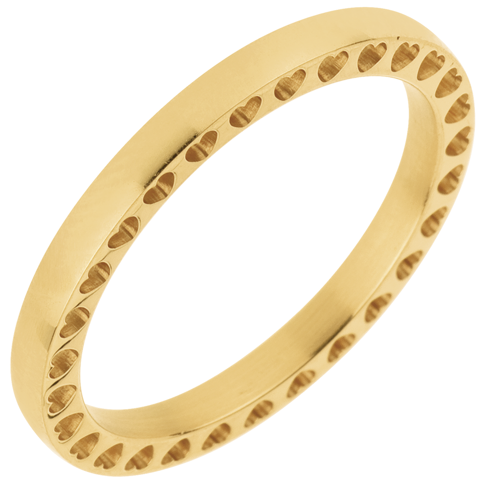 Una fede in Oro giallo con un motivo a cuore traforato all'infinito nella fascia.