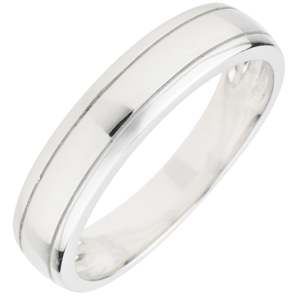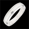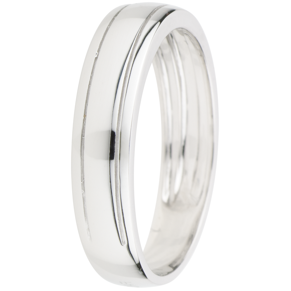 Una fede nastro in oro bianco dall'ornamento orizzontale classico ed intemporale.