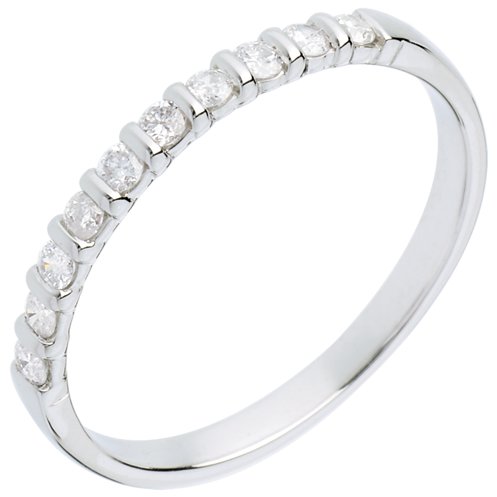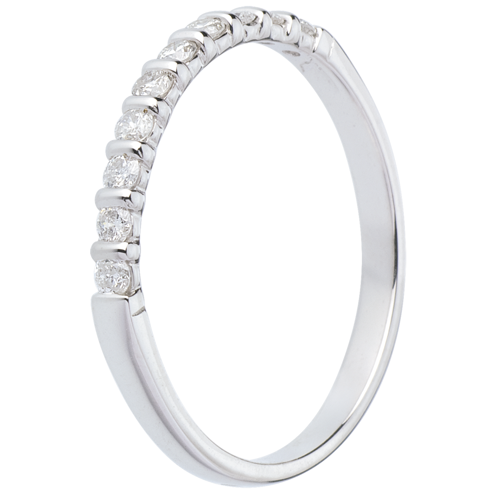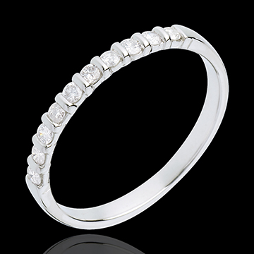 Fede nuziale - Oro bianco semi pavé - 18 carati - 10 Diamanti - incastonatura a barretta - 0.2 carati