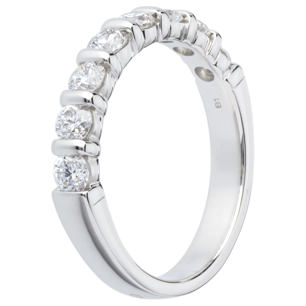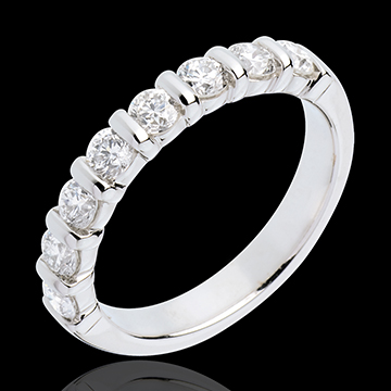 Fede nuziale - Oro bianco semi pavé - 18 carati - 8 Diamanti - incastonatura a barretta - 0.75 carati