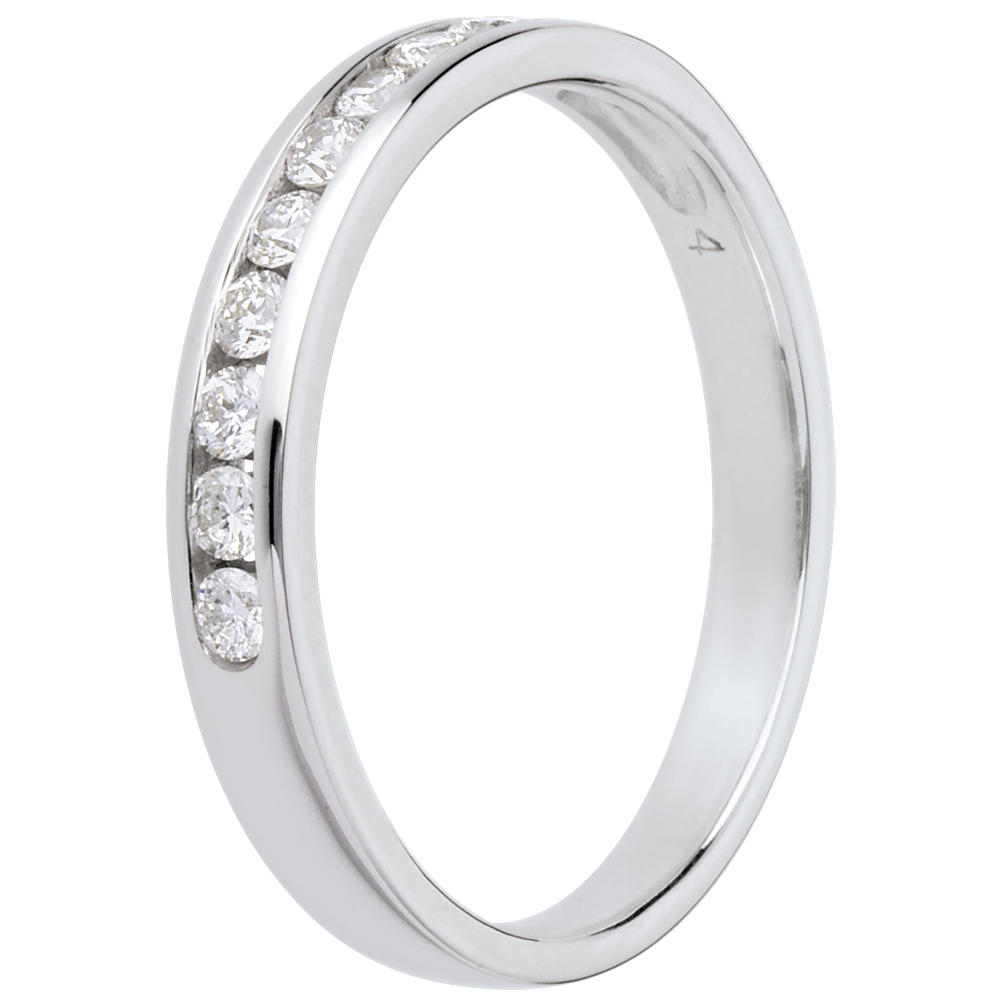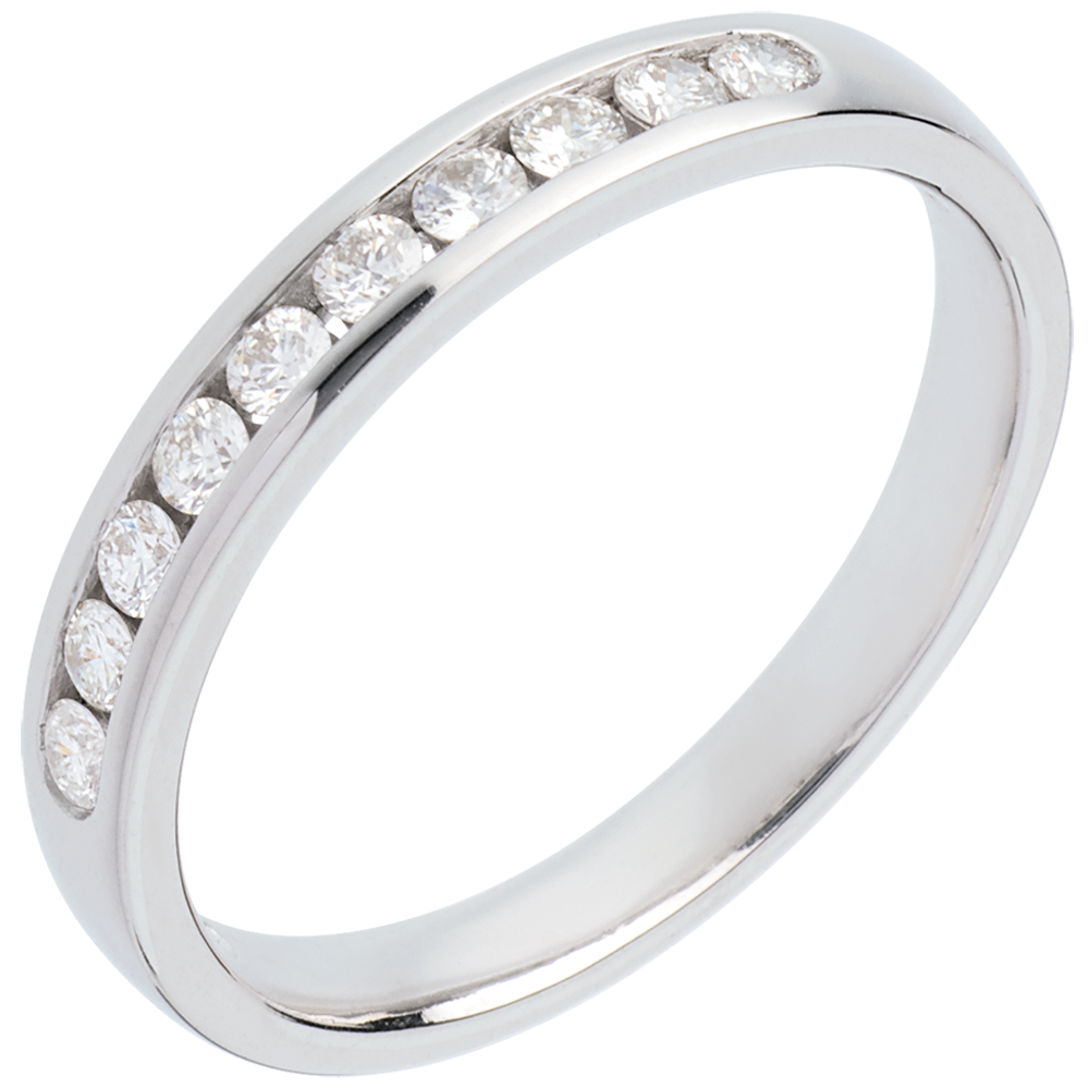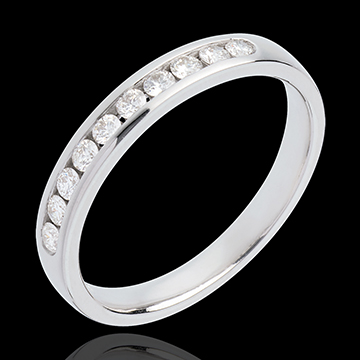 Fede nuziale - Oro bianco semi pavé - 18 carati - 10 Diamanti - incastonatura a binario - 0.25 carati