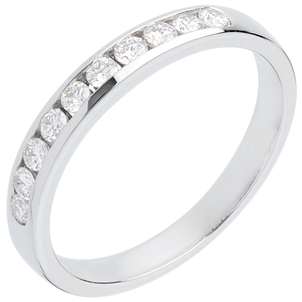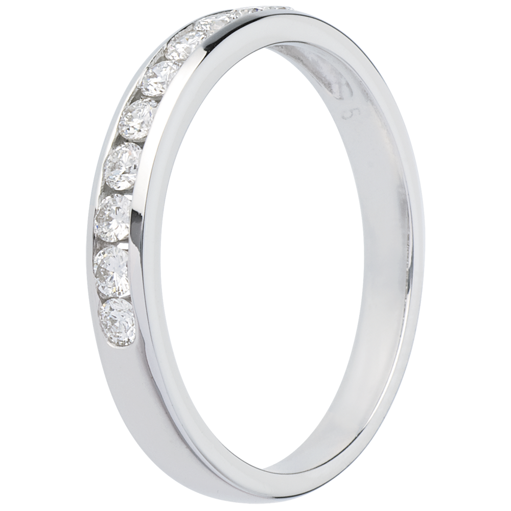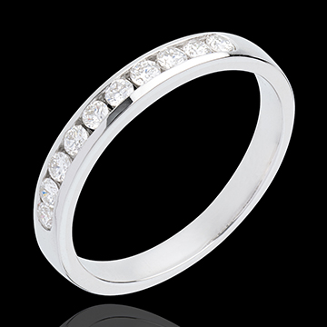 Fede nuziale - Oro bianco semi pavé - 18 carati - 10 Diamanti - incastonatura a binario
