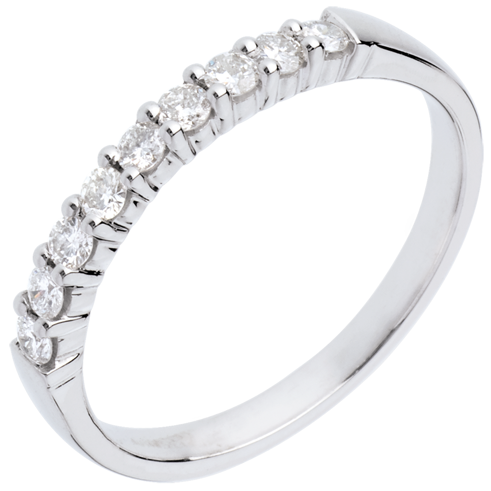 Fede nuziale - Oro bianco semi pavé - 18 carati - 9 diamanti - incastonatura a griffe - 0.25 carati
