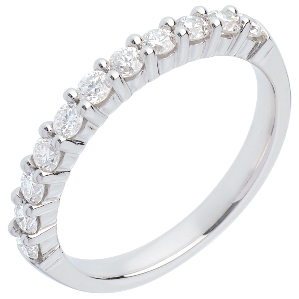 Fede nuziale - Oro bianco semi pavé - 18 carati - 11 Diamanti - incastonatura a griffe - 0.5 carati