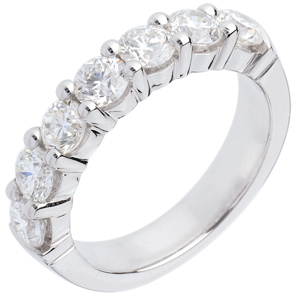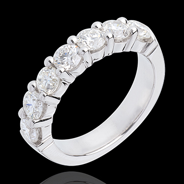 Fede nuziale - Oro bianco semi pavé - 18 carati - 7 Diamanti - incastonatura a griffe - 1.5 carati