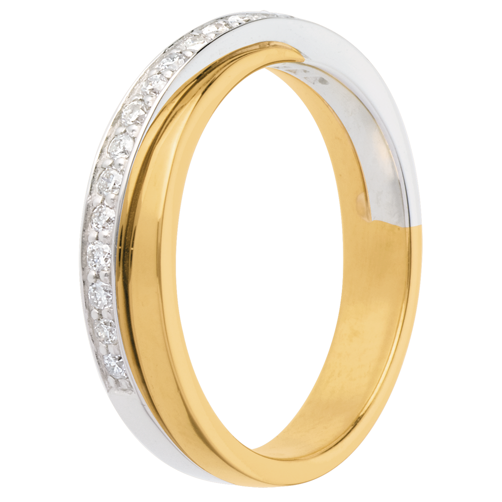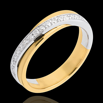 Fede nuziale Oro giallo e Oro bianco semi pavé - 18 carati - 17 Diamanti - 0.18 carati