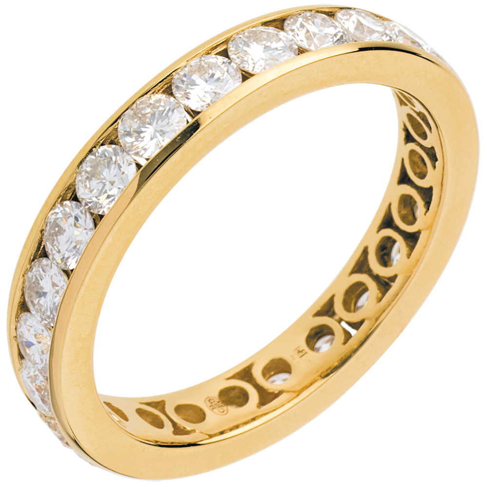 Fede nuziale - Oro giallo pavé - 18 carati - 23 Diamanti - incastonatura a binario - 2 carati